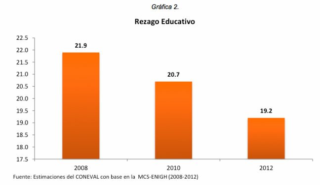 Respecto a la educación, el CONEVAL comenta que se ha disminuido el porcentaje de la población con rezago educativo durante el periodo 2008-2012. Lo anterior, es importante; sin embargo, hay que considerar que menor rezago educativo no implica necesariamente mayor calidad educativa, concepto que, de acuerdo a las Prueba PISA, todavía presenta diversas áreas de oportunidad.
