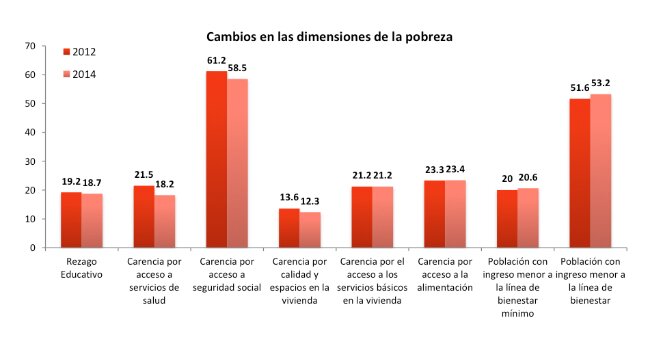 Tal como se sabe, hace dos semanas el Consejo Nacional de Evaluación de la Política de Desarrollo Social [CONEVAL], publicó los resultados de la medición de pobreza para el año 2014. Es importante comentar que dicha medición se establece en el artículo 36, de la Ley General de Desarrollo Social, y establece diferentes variables para que ésta pueda evaluarse a nivel multidimensional: