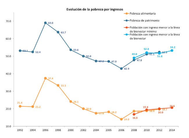Así pues, la población en pobreza extrema pasó de los 12.9 millones en 2010 a los 11.4 millones en 2014.