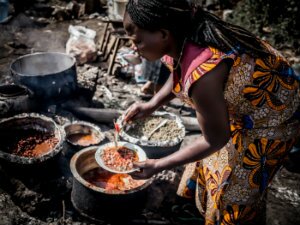 One such cluster of traders has been operating from an area called Riverside for half a decade. "When we first came here we agreed with the City Council that we could stay," says Mary Wambui, who prepares large quantities of tea, maize meal, and stew over a small wood fire in a series of scorched and battered tin pots. "The agreement was verbal and they never issued us with licenses. Over the years we have been forced to move again and again. Recently the police have really stepped up the pressure: as soon as they move us from one precarious piece of land to another, the cycle of harassment starts again."