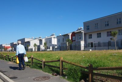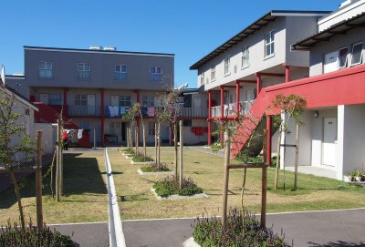 The urban form of 'Social housing', for example, with its higher densities and potential to integrate rental accommodation for lower income groups within well-located areas, can potentially facilitate both physical and social integration. These concerns were important priorities in a recently completed social housing project in Cape Town, called Steen Villa (fig. 3, 4). The project consists of 700 units in two to three storey walk-ups, clustered in groups of 20-35 units around courtyard spaces. The courtyards were specifically designed for everyday activities and neighborliness (play, socializing, washing, etc.), and a degree of racial integration was also achieved with a tenant mix of approximately 60 percent colored, 39 percent black, and a small number of white and Indian residents. Still further initiatives taken for racial and tenant integration also included a 'Good Neighbor Charter', football and netball teams, a pensioners' club, Women's Day celebrations, a job placement program, and a neighborhood watch.