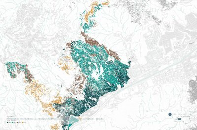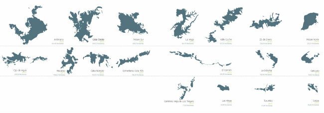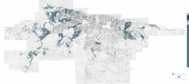 Imagen 1: Informal (azul) y áreas formales (en gris) de Caracas. Imagen 2: UPFs en Caracas. Imagen 3: Proyección de la población de Antomano. Todas las imágenes son créditos Enlace Arquitectura.