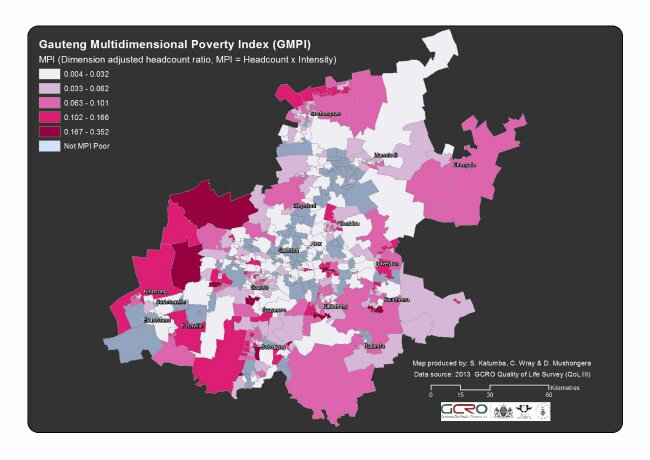 Photo: 'Multi-dimensional poverty index', February 2015; 'Look for work trips', November-December 2014 (maps by GCRO).