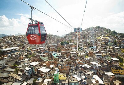 Em 2011, foi inaugurado, no Rio de Janeiro, o primeiro transporte de massa por cabos do Brasil. Aliando a aventura da locomoção suspensa à paisagem privilegiada, o Teleférico A, instalado no Complexo no Alemão — imenso agrupamento de favelas marcado pela violência e pelo tráfico de drogas — alterou o imaginário coletivo a respeito da região, transformada em local de visitação. Considerando o propósito do projeto — facilitar a mobilidade dos moradores —, no entanto, sua eficácia é questionável.