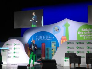 The New Cities Summit in Jakarta started with a keynote presentation by Greg Lindsay, Senior Fellow, Mobility Initiative at the New Cities Foundation. Mr. Lindsay emphasized the fact that the urban century is largely an Asian phenomenon, and that it is just getting started: many Asian countries such as India and Vietnam still have urbanization rates well below 50 percent. However this is changing quickly — within a few decades, the landmass of cities worldwide will triple, representing an astounding acceleration of urbanization. Mr. Lindsay represented this challenge of urbanization as a "wicked problem," meaning that it cannot be solved, just managed. Mr. Lindsay concluded by highlighting a number of important challenges facing cities, notably transportation. He cited Mitchell L. Moss's study showing that in New York City, transportation is the primary factor determining access to job opportunities: "Having a transit card is more important than having a college education."