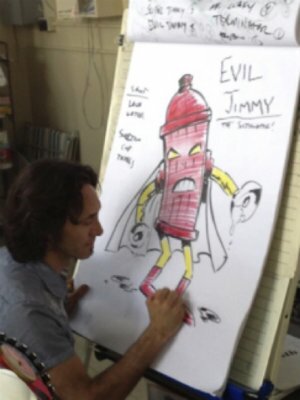 Photo 1: The cover of "Mayah's Lot", Book 1 of the Environmental Justice Chronicles, by Charlie La Greca and Rebecca Bratspies. Photo 2: Charlie LaGreca at work on "Mayah's Lot".
